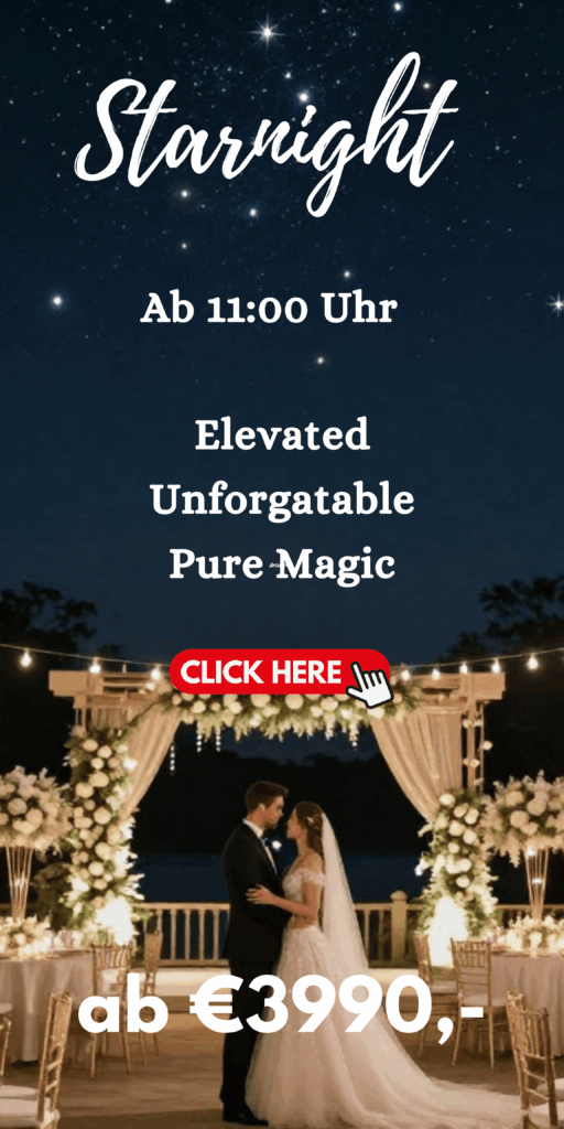 Wenn euer Fokus auf der Party liegt, ist dieses Paket genau das Richtige. Mit einer professionellen DJ-Performance, hochwertiger Sound- und Lichttechnik sowie einer mitreißenden Atmosphäre steht eine unvergessliche Tanznacht im Mittelpunkt. Perfekt für Paare, die unkompliziert und flexibel feiern möchten, ohne Kompromisse bei der Qualität.